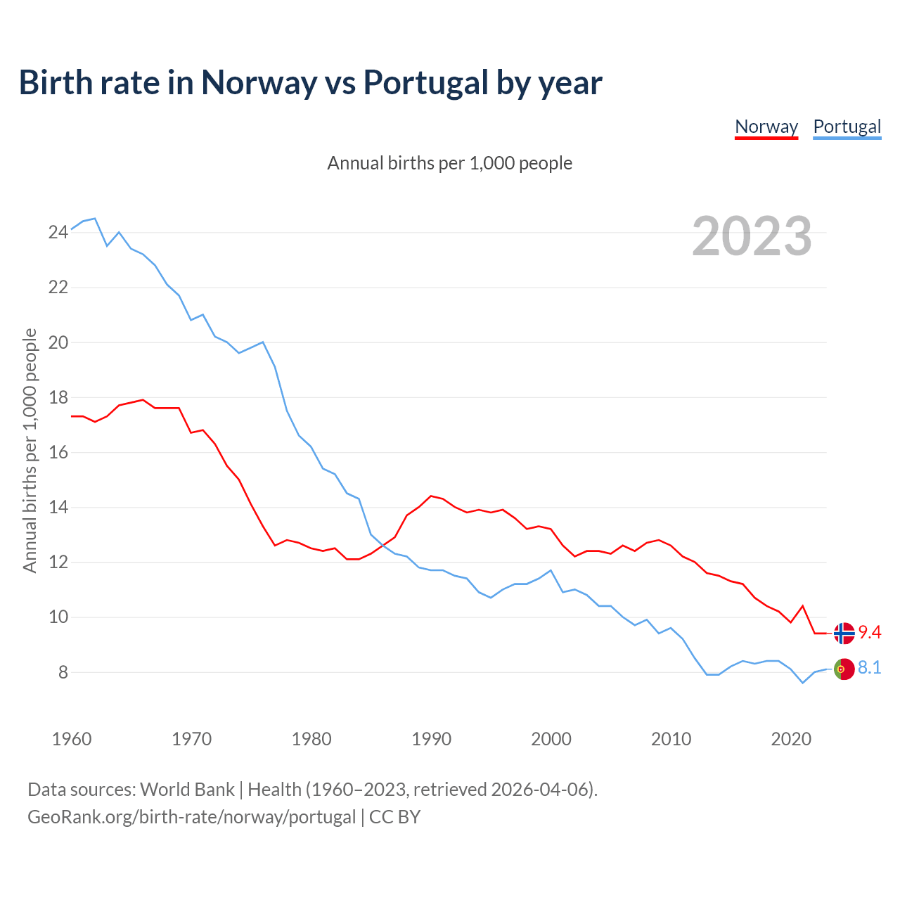 GeoRank.org/birth-rate/norway/portugal | CC BY
