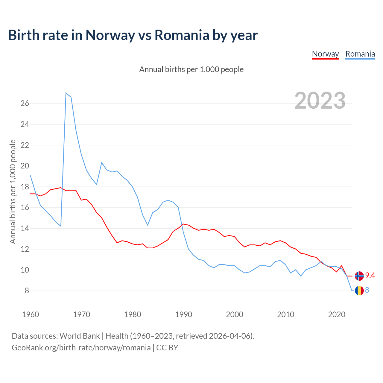 GeoRank.org/birth-rate/norway/romania | CC BY