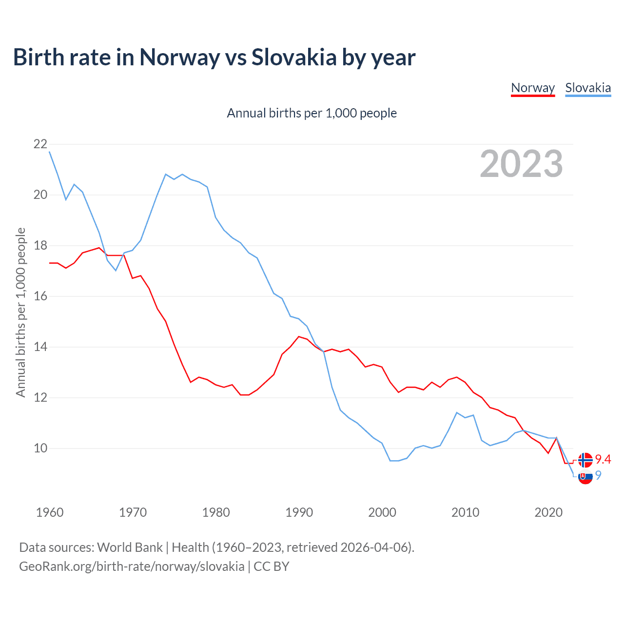 GeoRank.org/birth-rate/norway/slovakia | CC BY