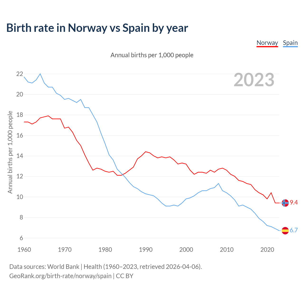 GeoRank.org/birth-rate/norway/spain | CC BY