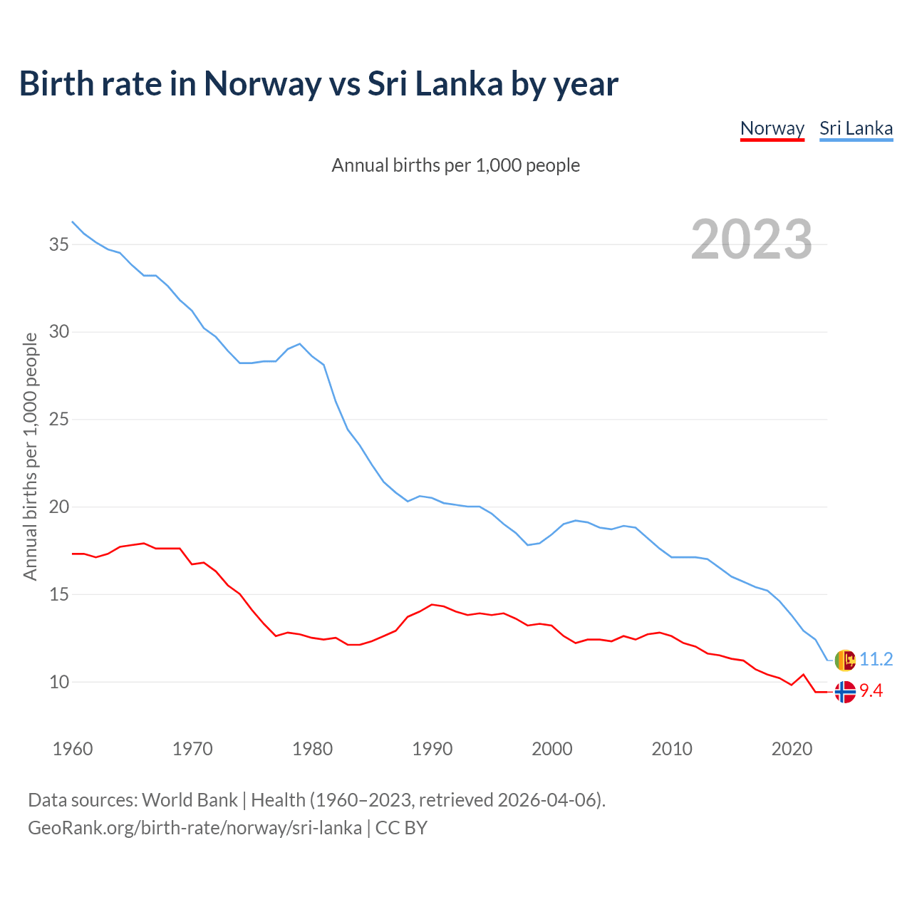 GeoRank.org/birth-rate/norway/sri-lanka | CC BY
