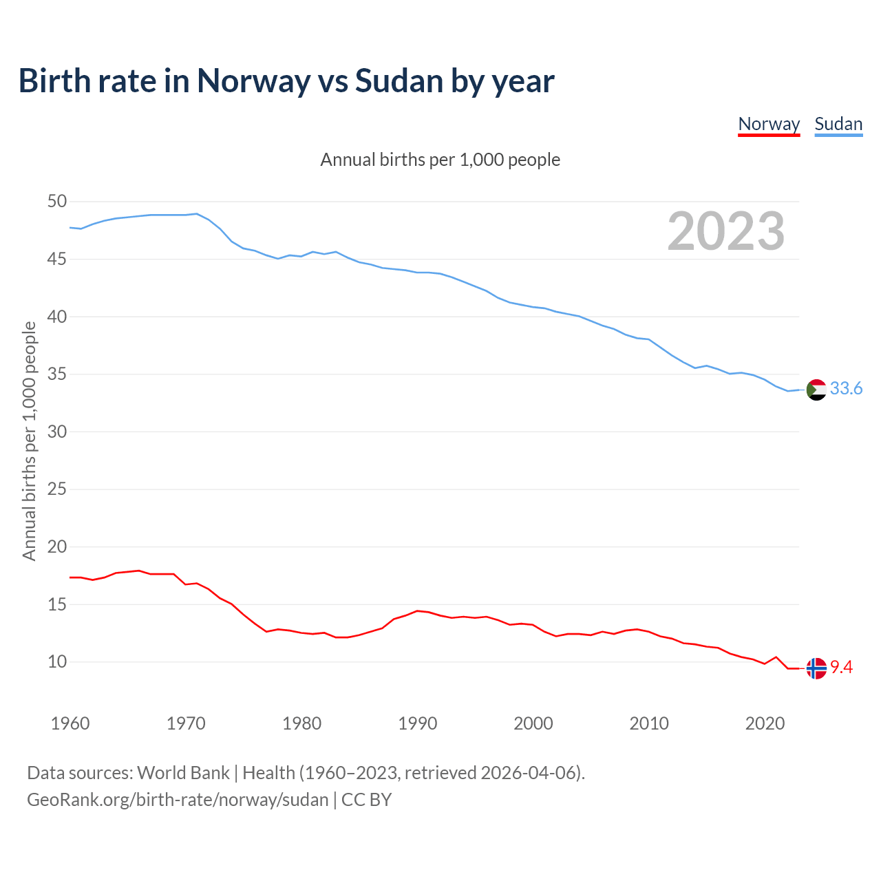 GeoRank.org/birth-rate/norway/sudan | CC BY
