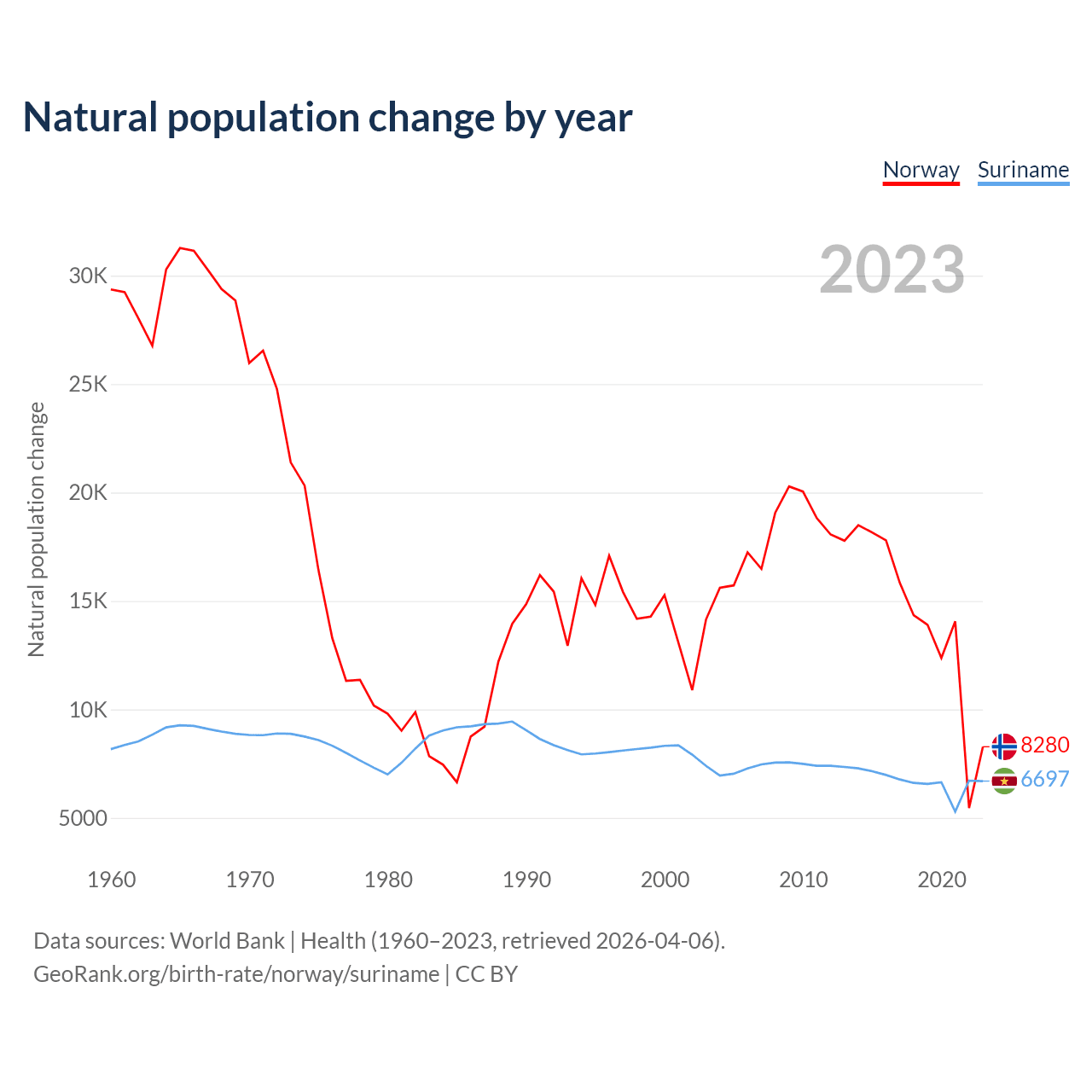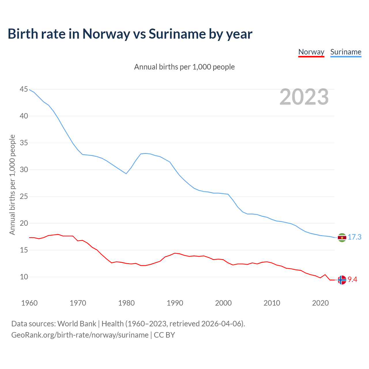 GeoRank.org/birth-rate/norway/suriname | CC BY