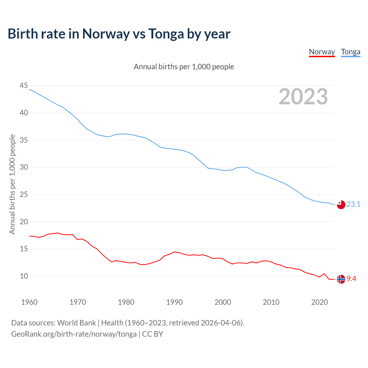 GeoRank.org/birth-rate/norway/tonga | CC BY