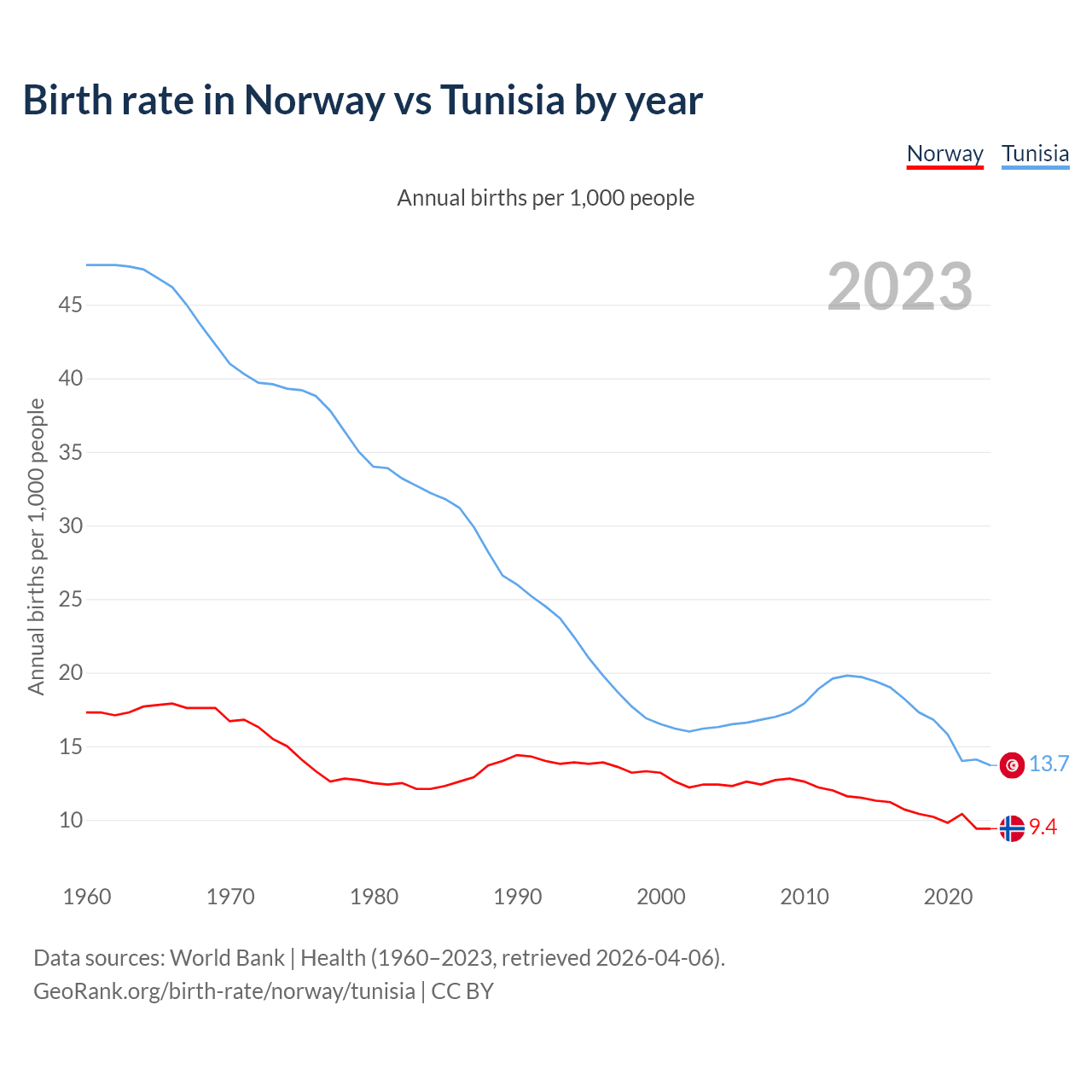 GeoRank.org/birth-rate/norway/tunisia | CC BY
