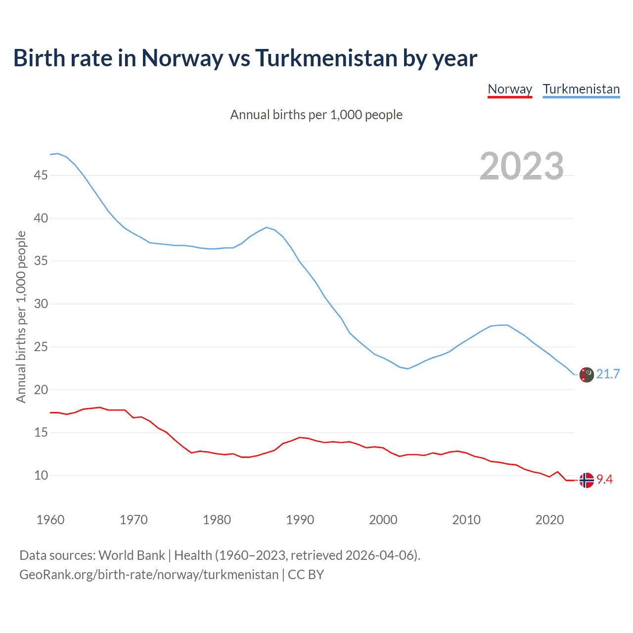 GeoRank.org/birth-rate/norway/turkmenistan | CC BY