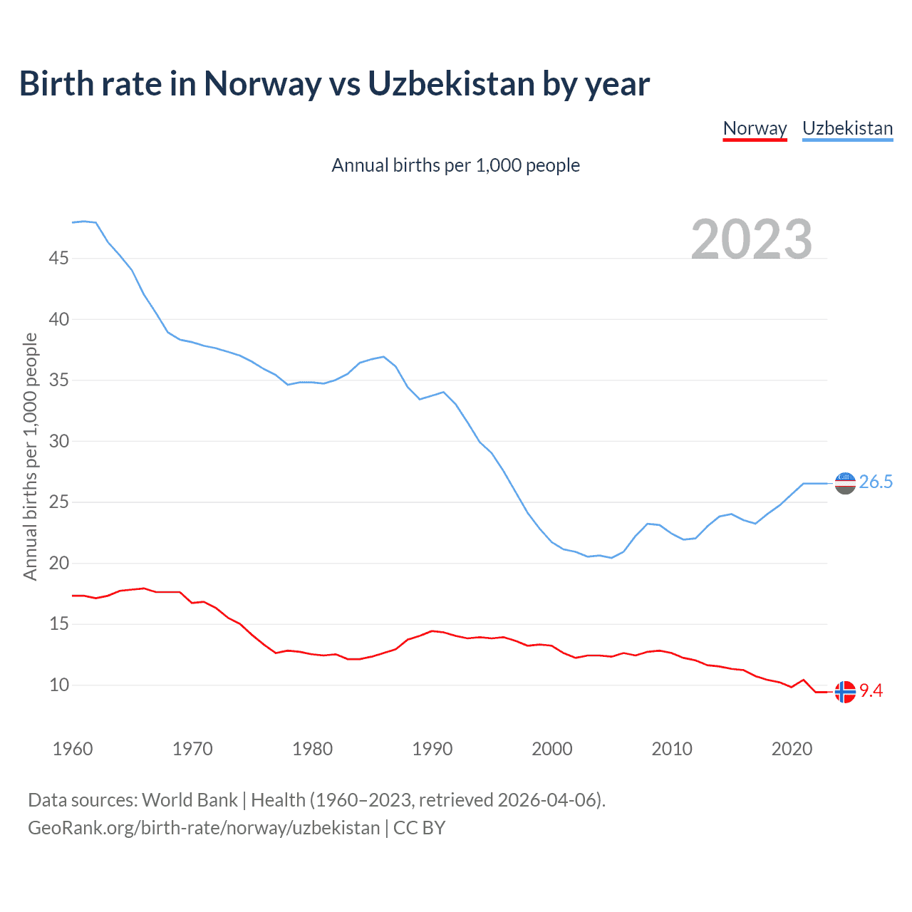 GeoRank.org/birth-rate/norway/uzbekistan | CC BY