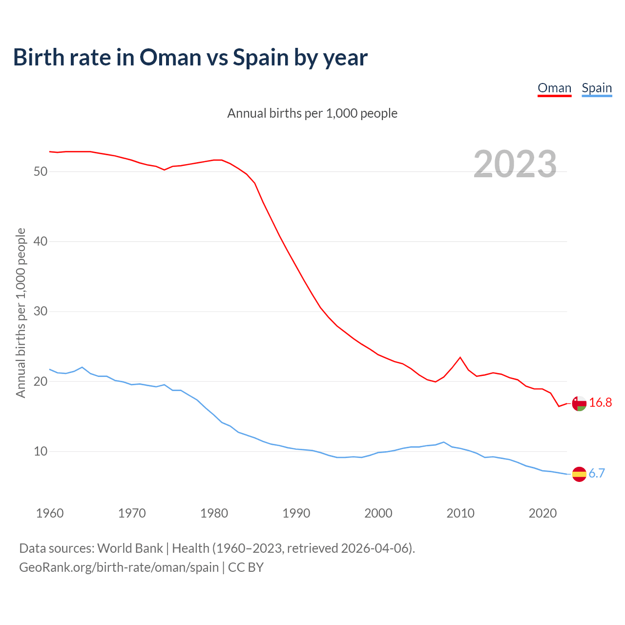 GeoRank.org/birth-rate/oman/spain | CC BY