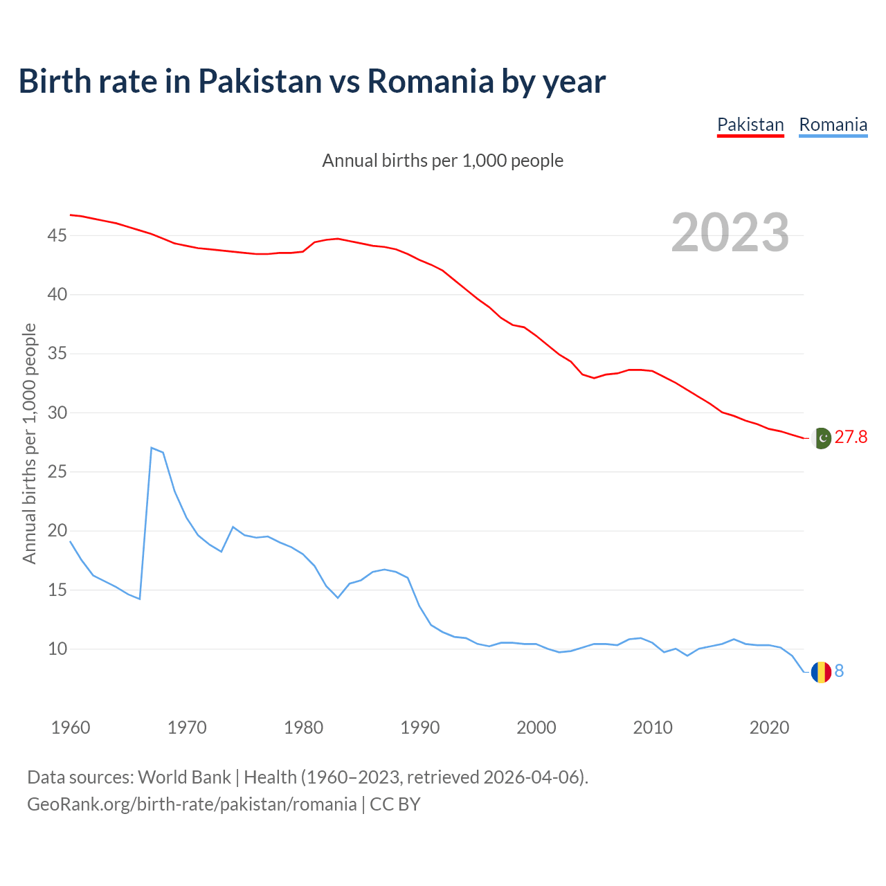 GeoRank.org/birth-rate/pakistan/romania | CC BY