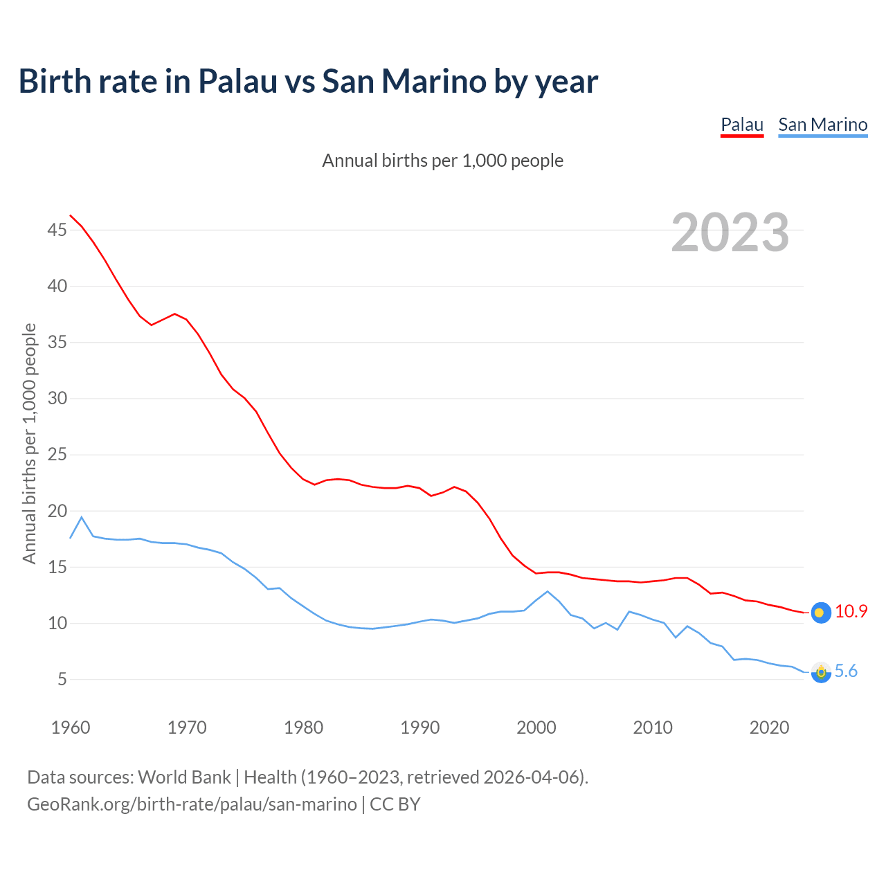 GeoRank.org/birth-rate/palau/san-marino | CC BY