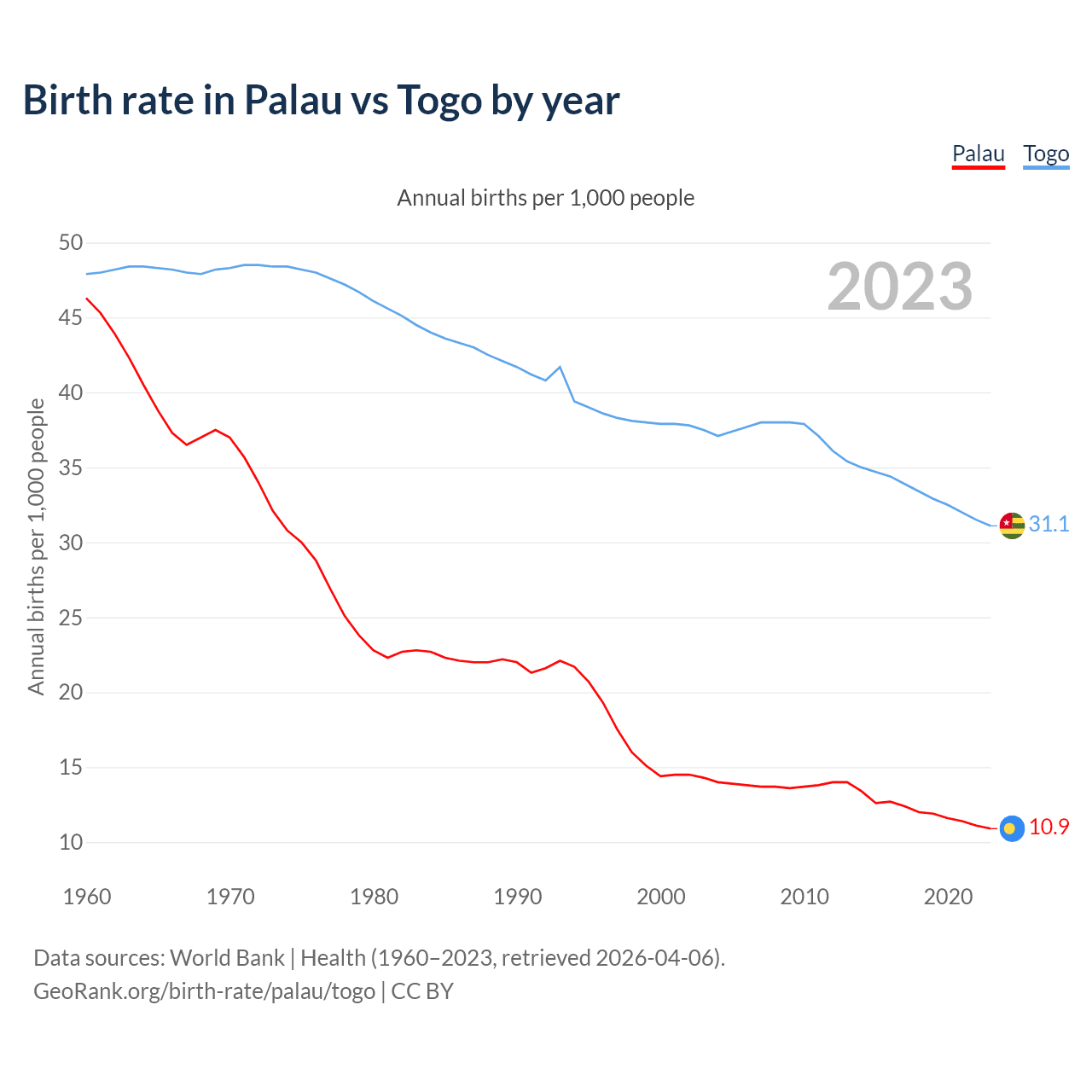 GeoRank.org/birth-rate/palau/togo | CC BY