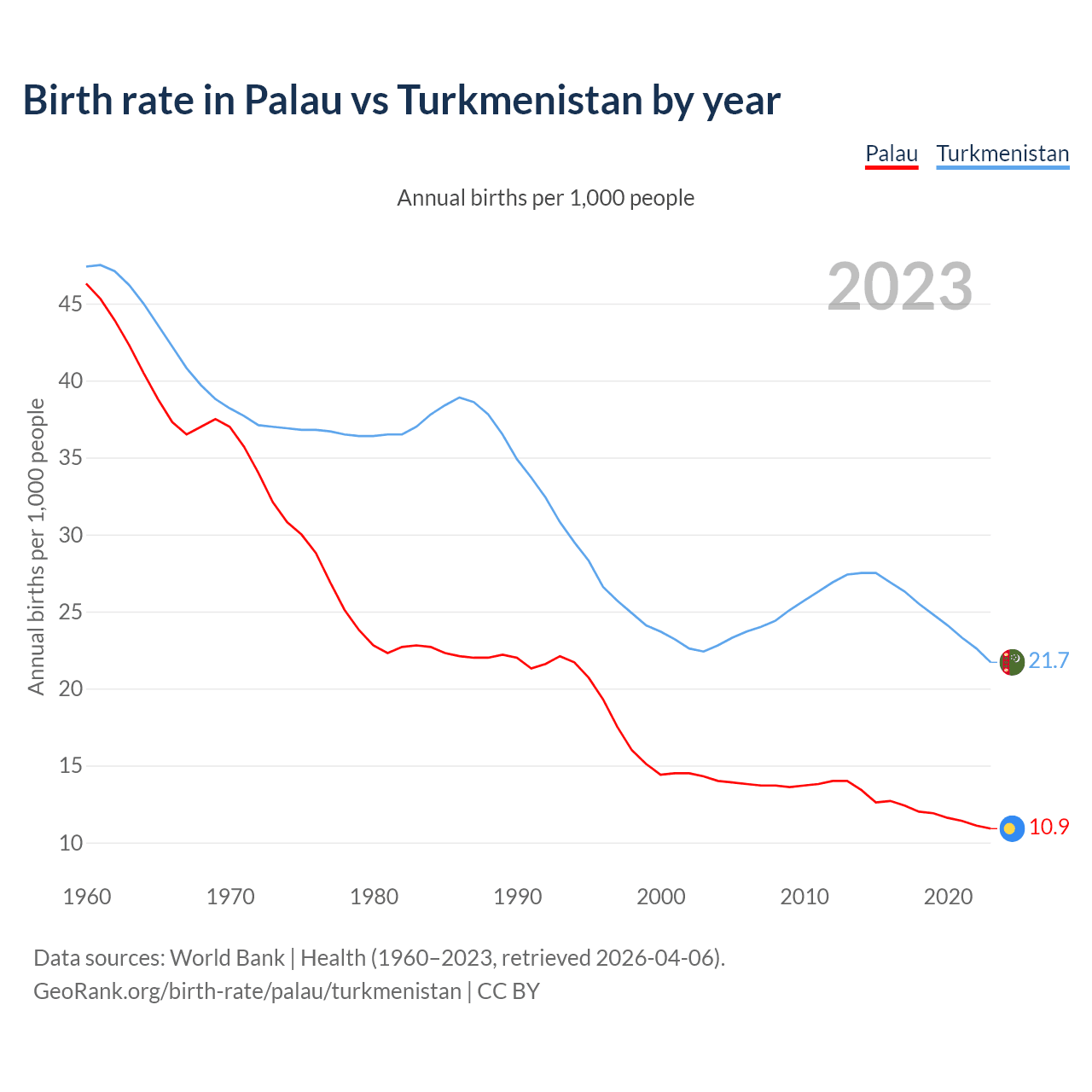 GeoRank.org/birth-rate/palau/turkmenistan | CC BY