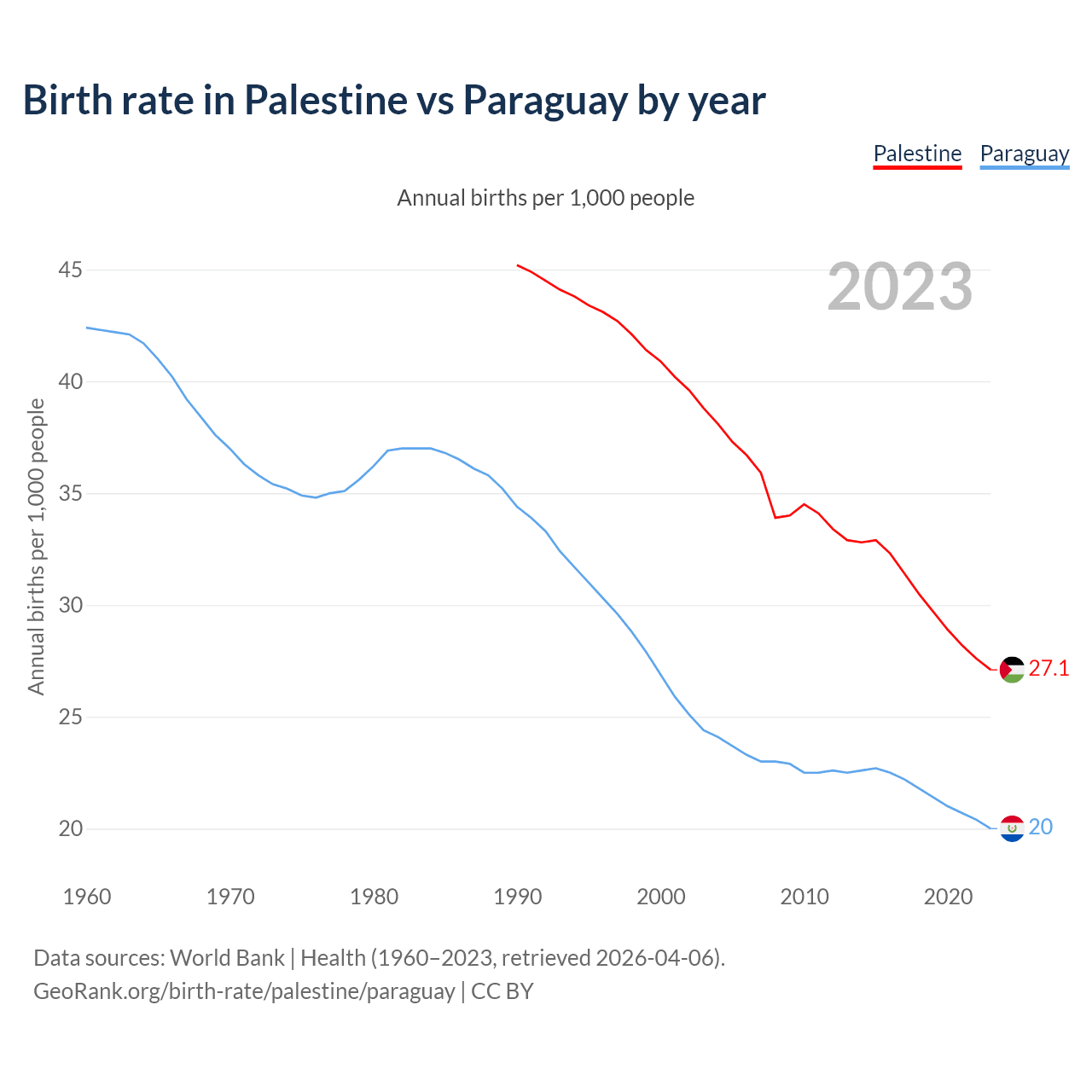 GeoRank.org/birth-rate/palestine/paraguay | CC BY