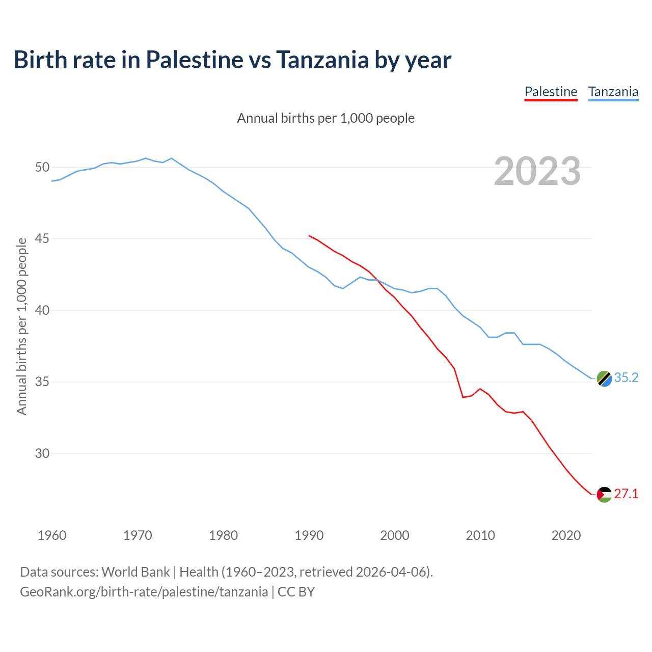 GeoRank.org/birth-rate/palestine/tanzania | CC BY