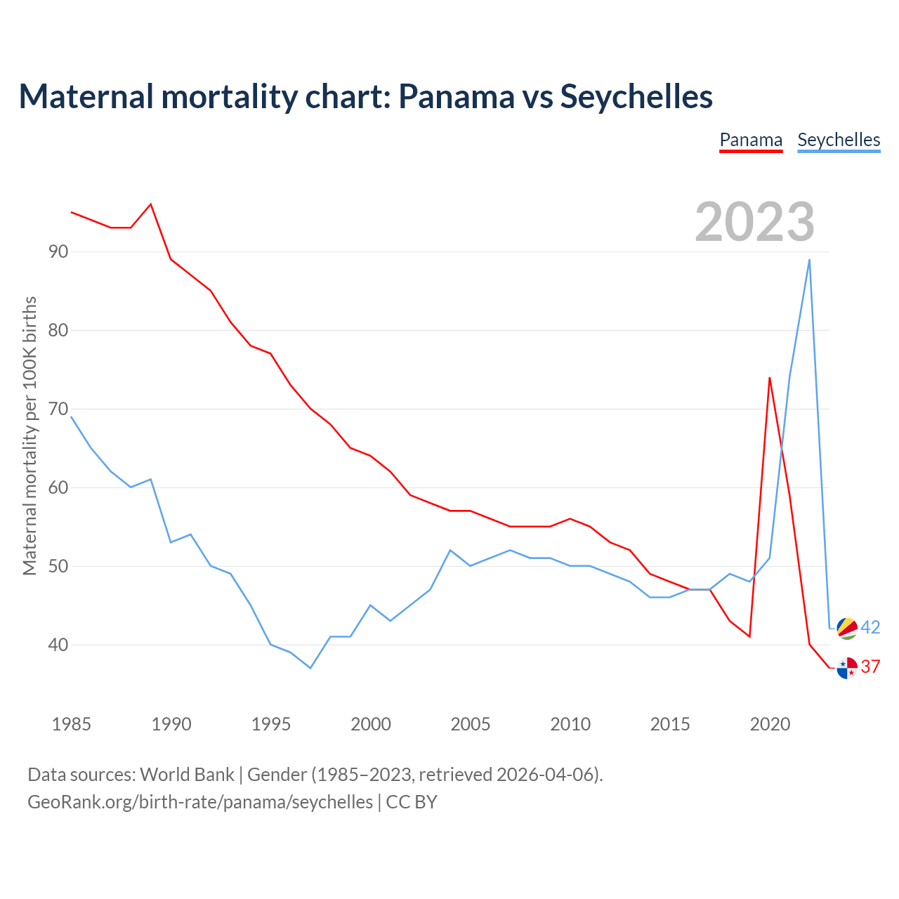 The maternal mortality rate, which is the probability of dying during childbirth or within 42 days of pregnancy termination, is 37 deaths per 100,000 live births in Panama, compared to 42 deaths in the Seychelles.
