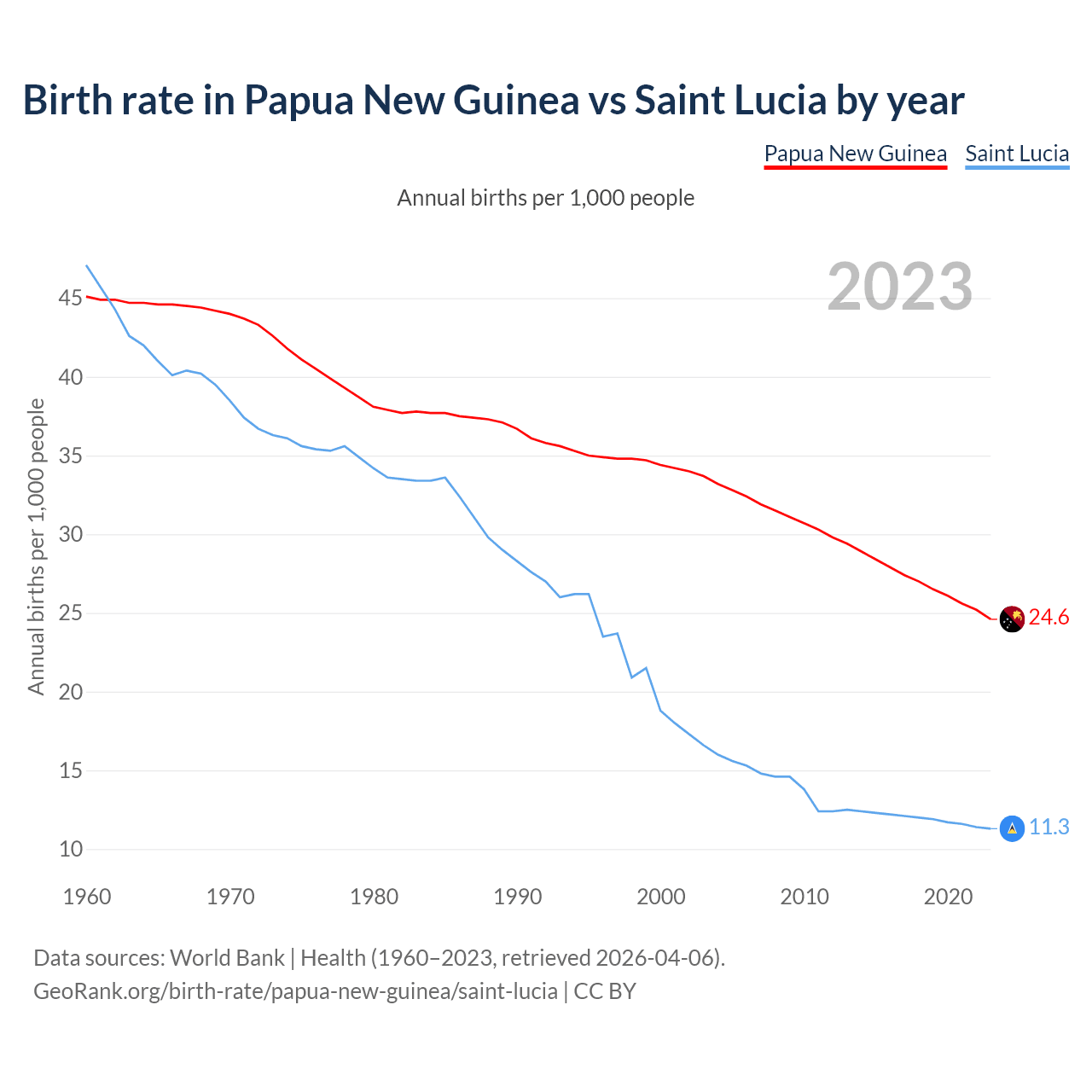 GeoRank.org/birth-rate/papua-new-guinea/saint-lucia | CC BY