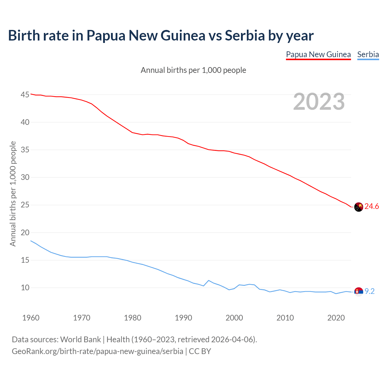 GeoRank.org/birth-rate/papua-new-guinea/serbia | CC BY