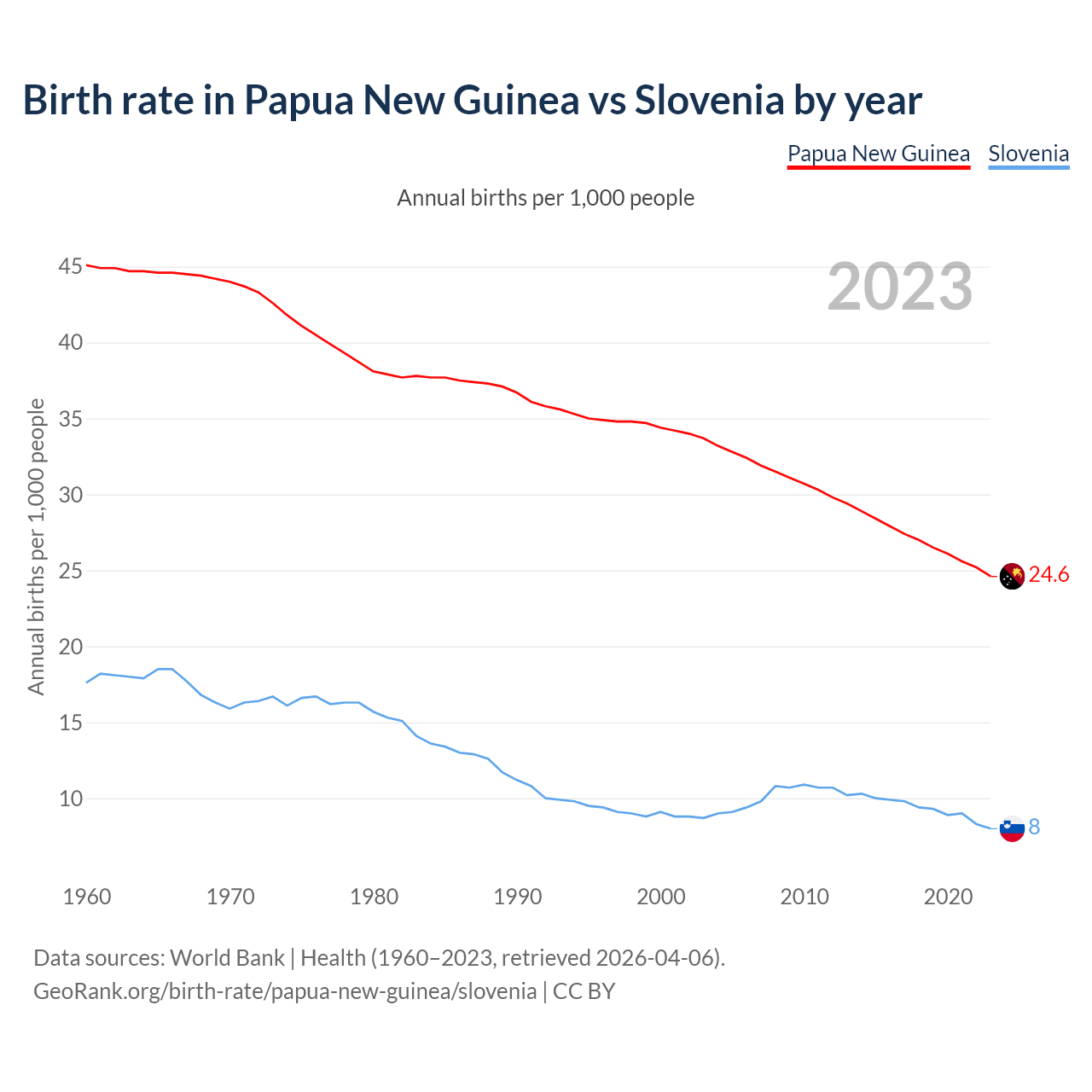 GeoRank.org/birth-rate/papua-new-guinea/slovenia | CC BY