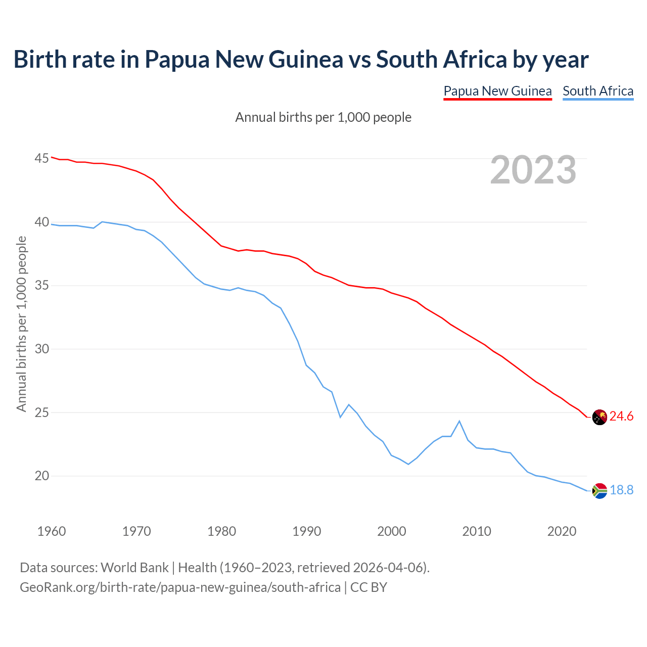 GeoRank.org/birth-rate/papua-new-guinea/south-africa | CC BY
