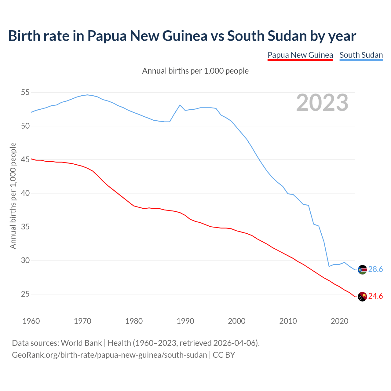 GeoRank.org/birth-rate/papua-new-guinea/south-sudan | CC BY