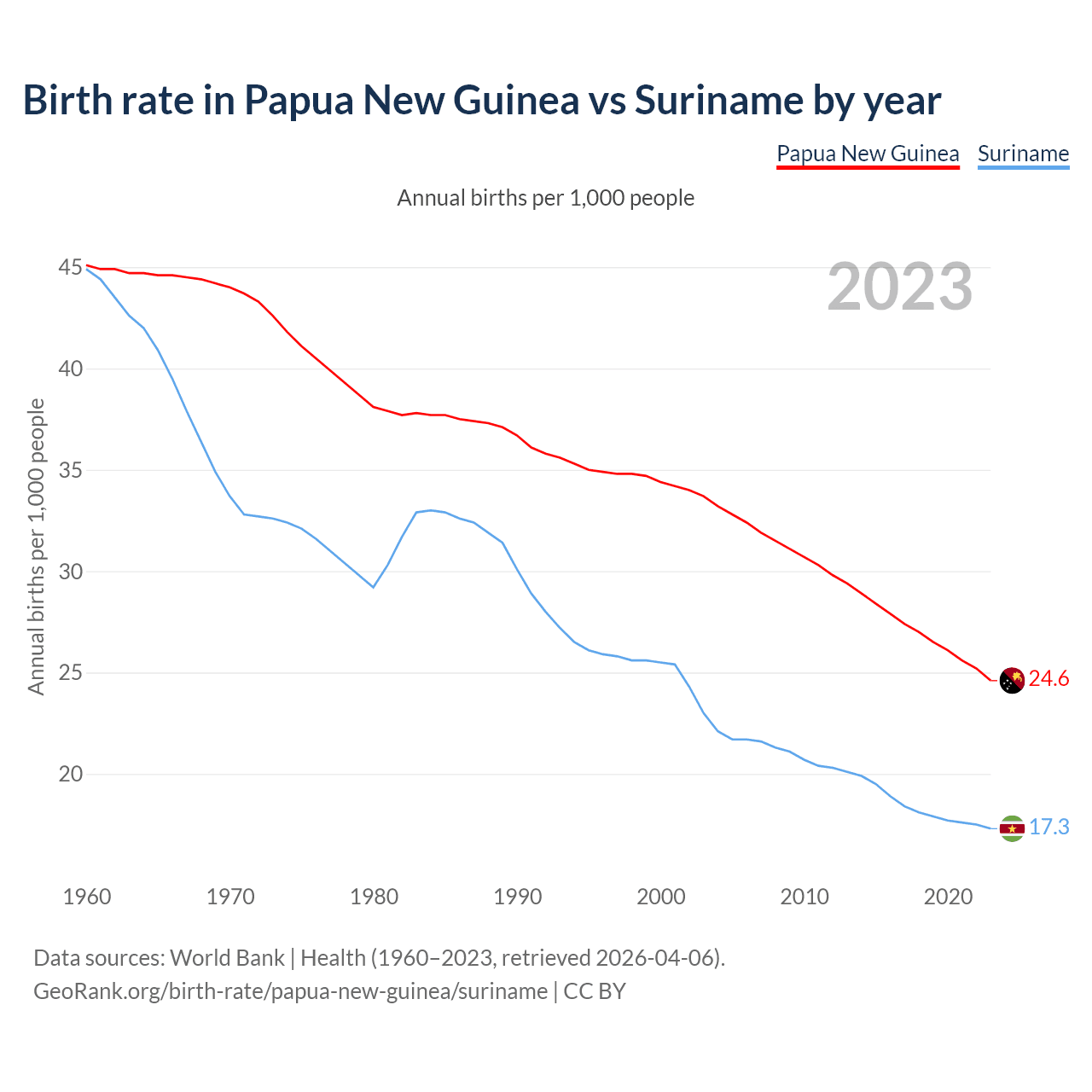GeoRank.org/birth-rate/papua-new-guinea/suriname | CC BY
