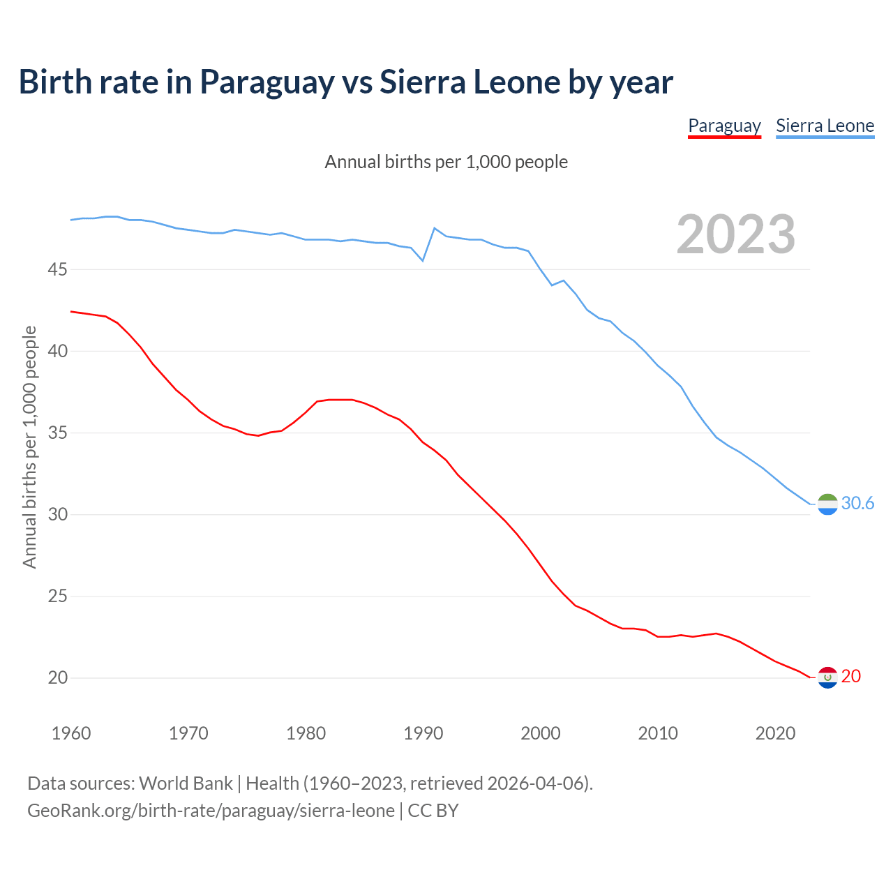 GeoRank.org/birth-rate/paraguay/sierra-leone | CC BY