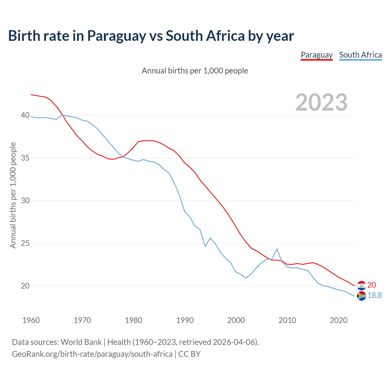 GeoRank.org/birth-rate/paraguay/south-africa | CC BY