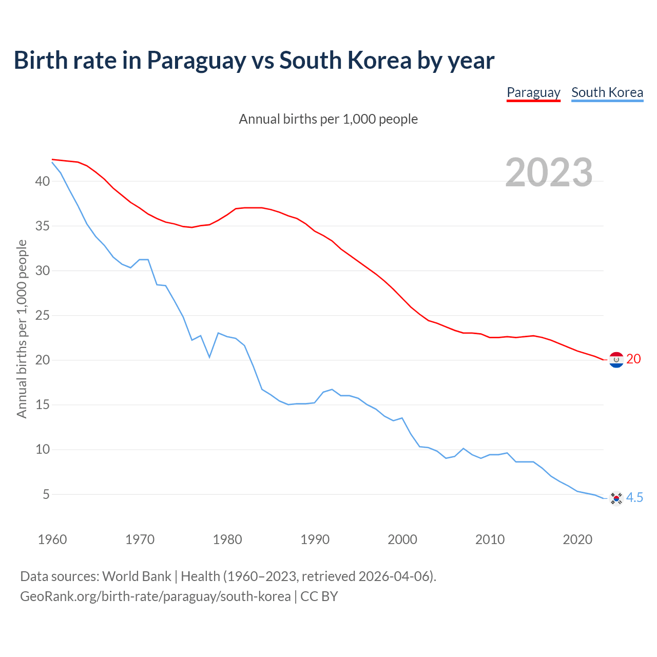 GeoRank.org/birth-rate/paraguay/south-korea | CC BY