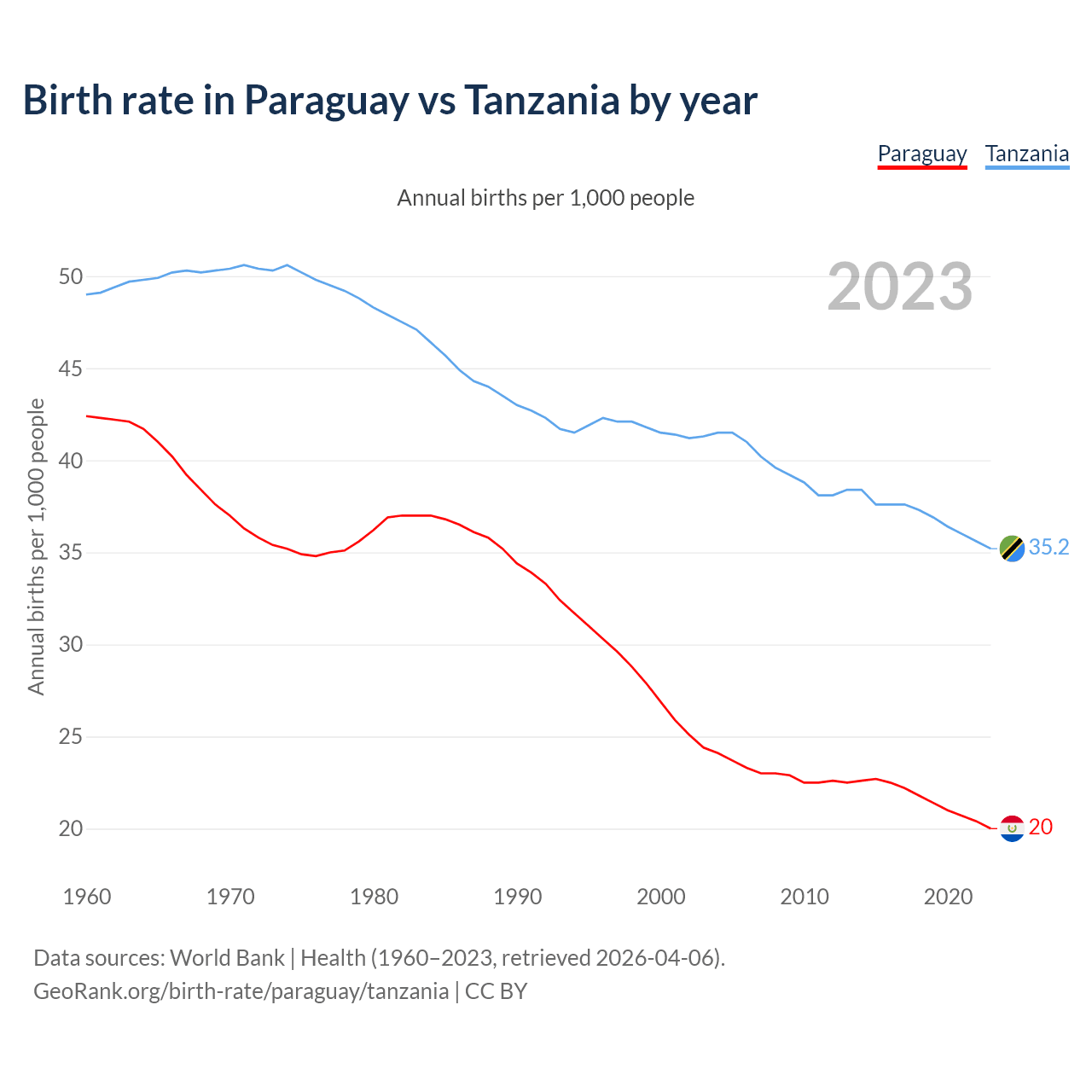 GeoRank.org/birth-rate/paraguay/tanzania | CC BY