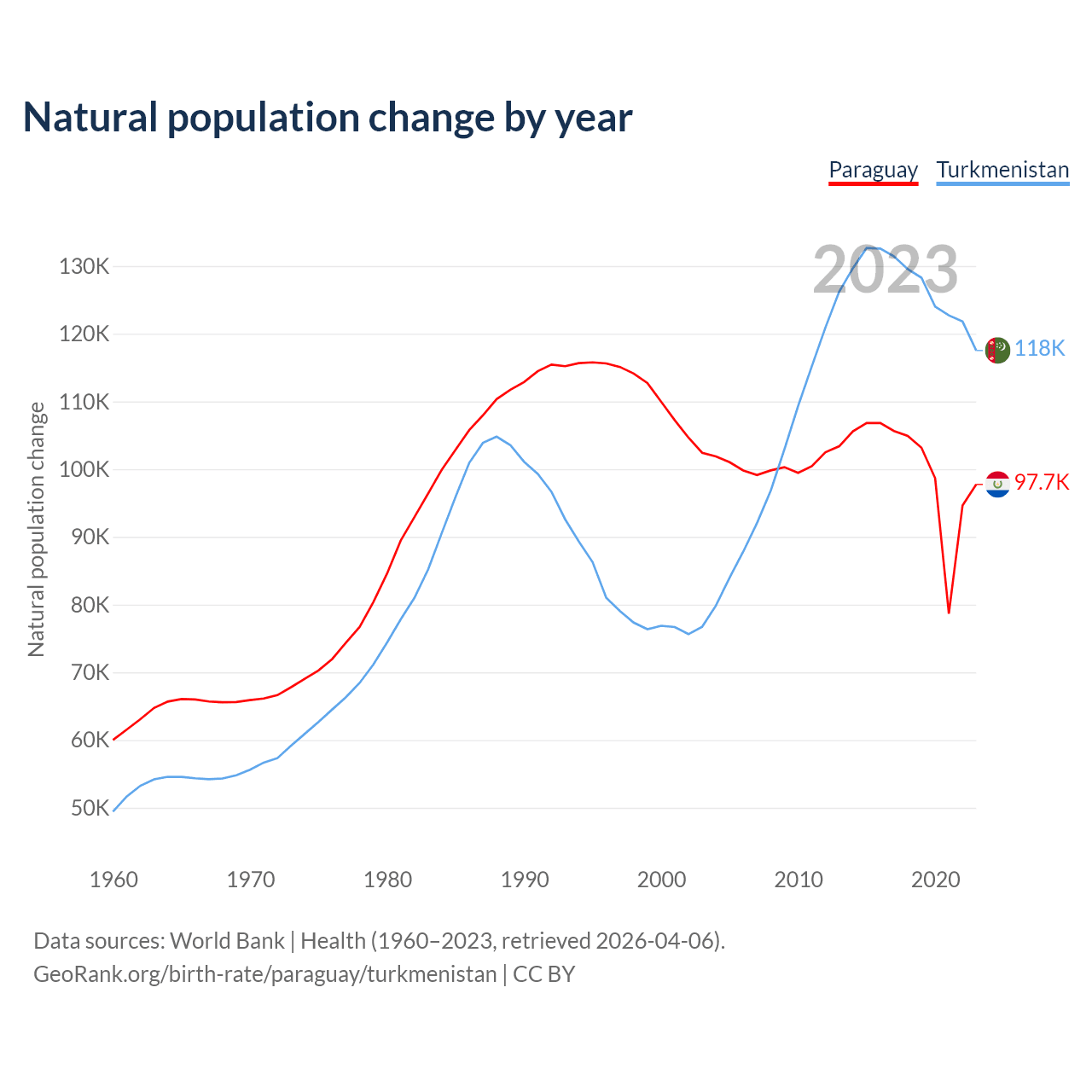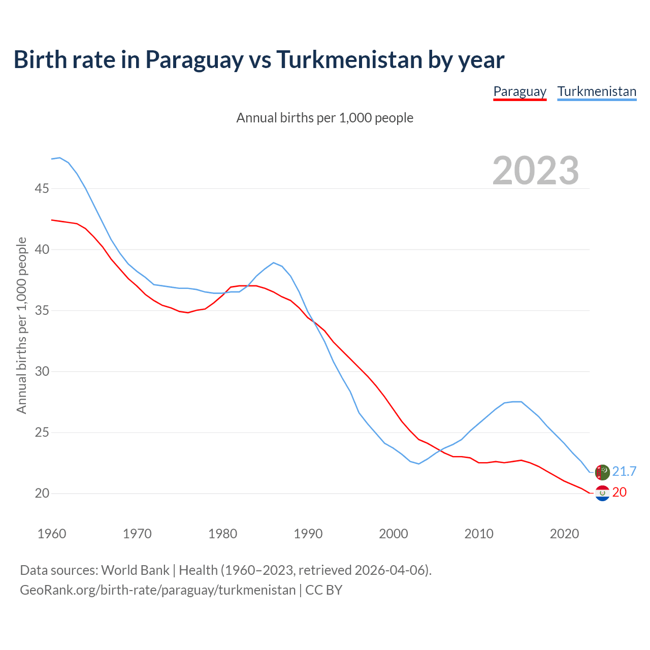 GeoRank.org/birth-rate/paraguay/turkmenistan | CC BY