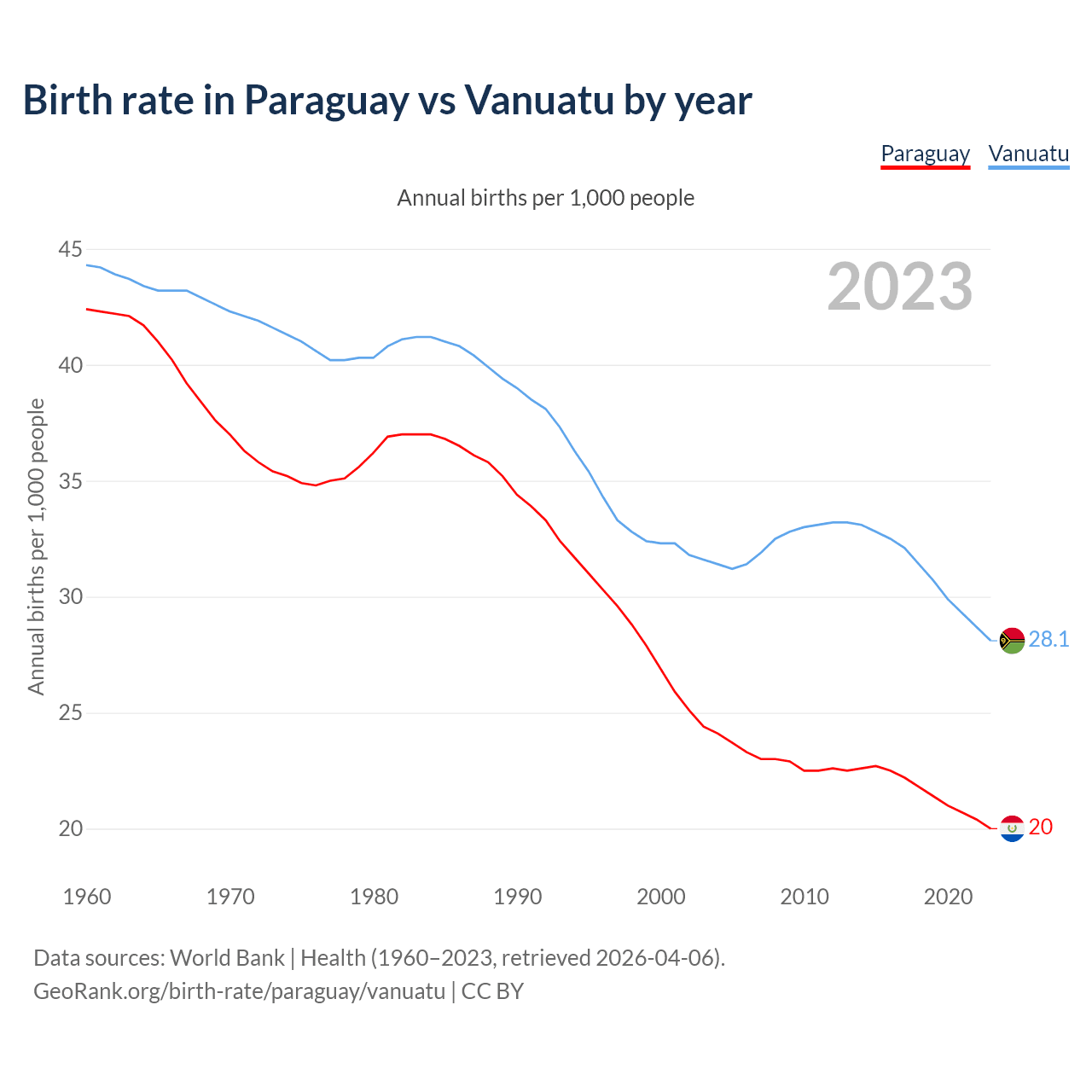 GeoRank.org/birth-rate/paraguay/vanuatu | CC BY