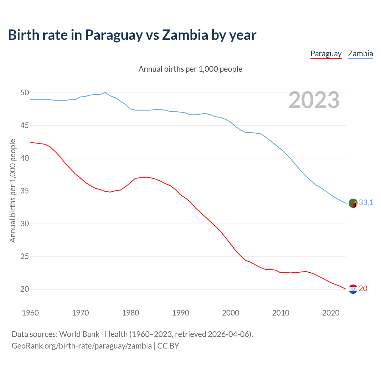 GeoRank.org/birth-rate/paraguay/zambia | CC BY