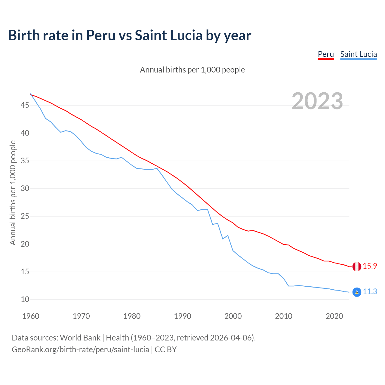 GeoRank.org/birth-rate/peru/saint-lucia | CC BY
