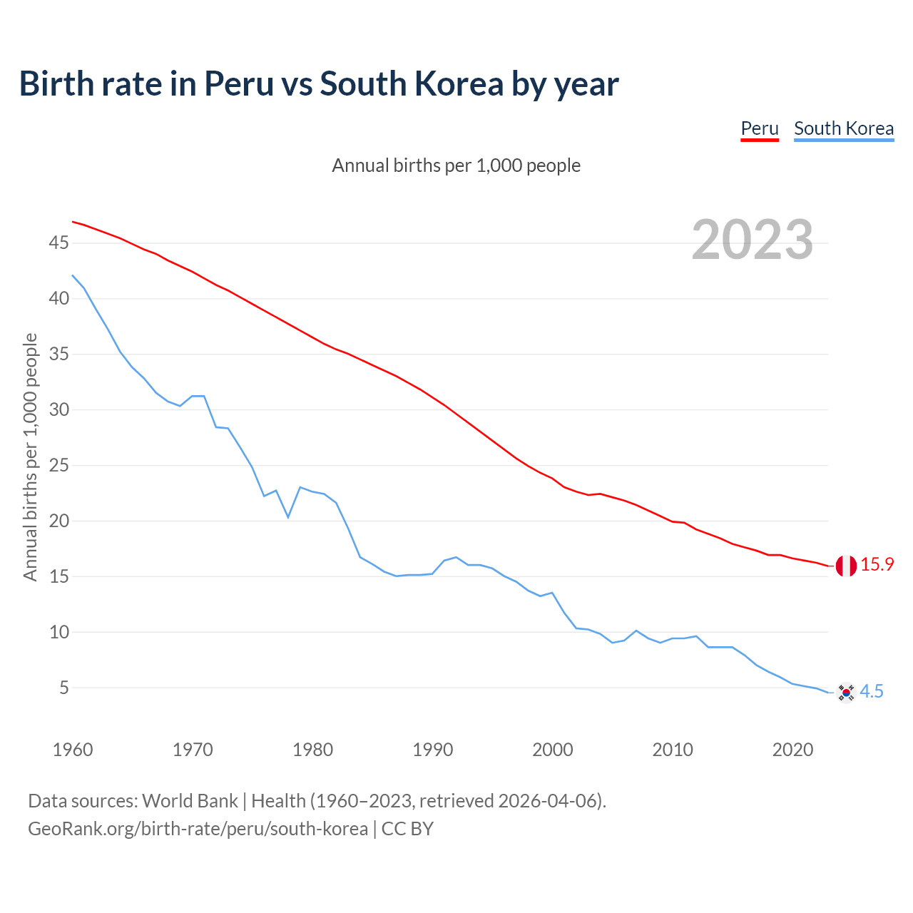 GeoRank.org/birth-rate/peru/south-korea | CC BY