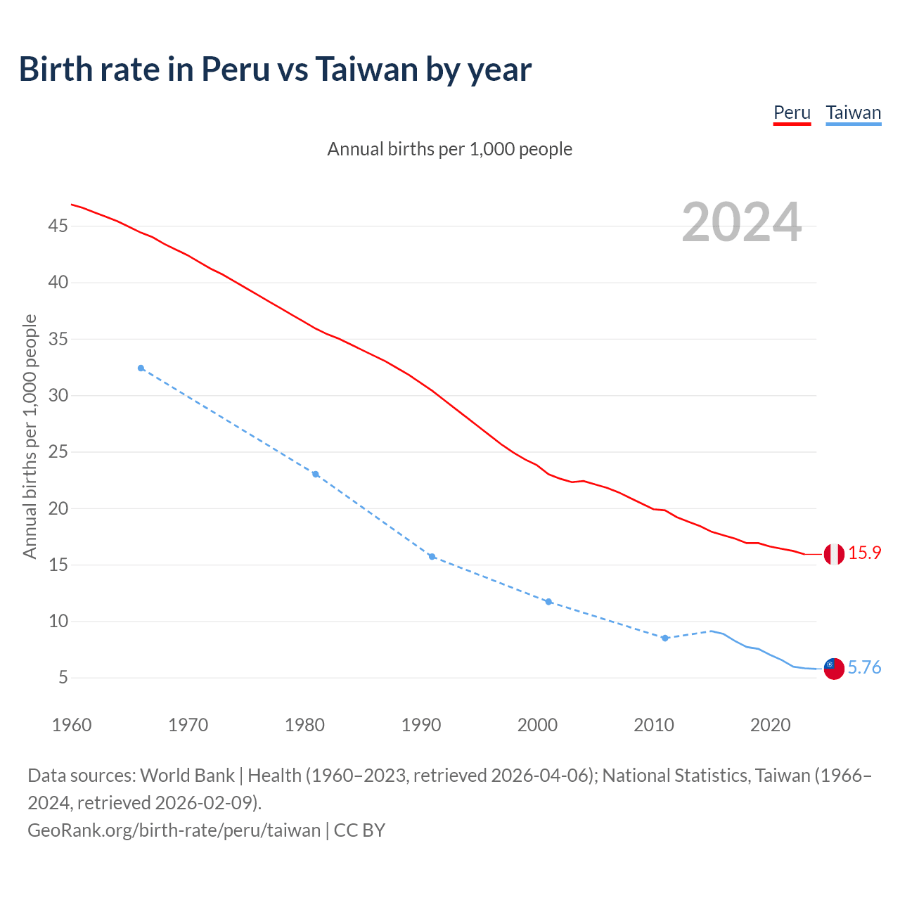 GeoRank.org/birth-rate/peru/taiwan | CC BY