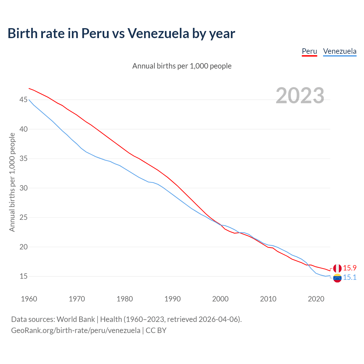 GeoRank.org/birth-rate/peru/venezuela | CC BY
