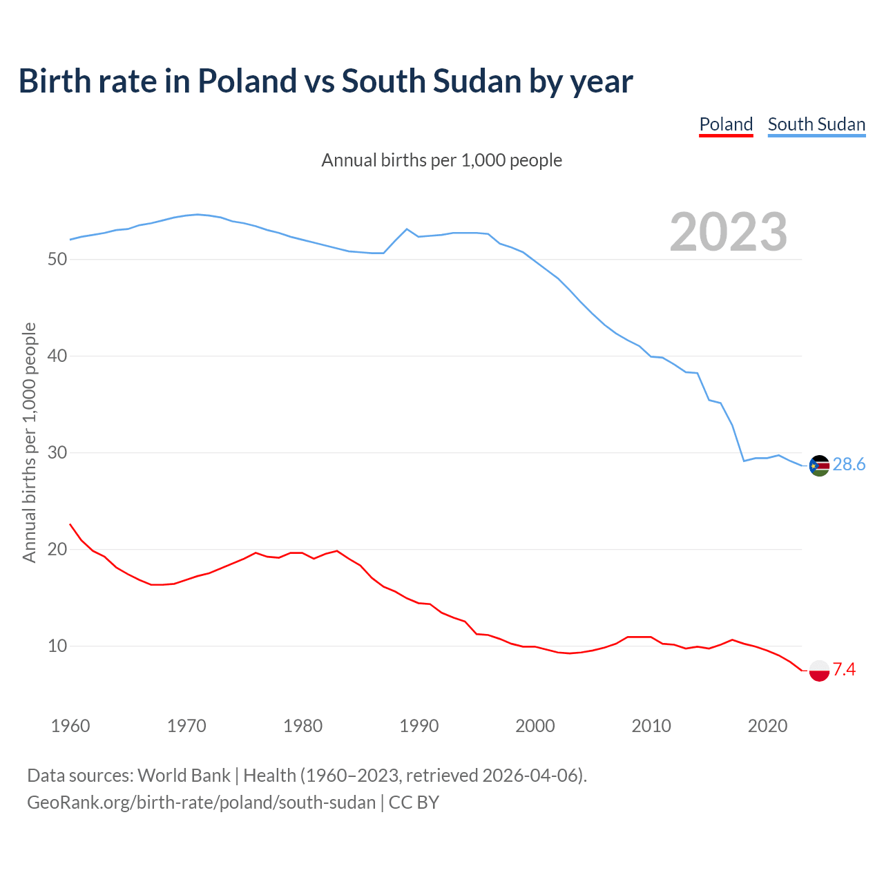 GeoRank.org/birth-rate/poland/south-sudan | CC BY