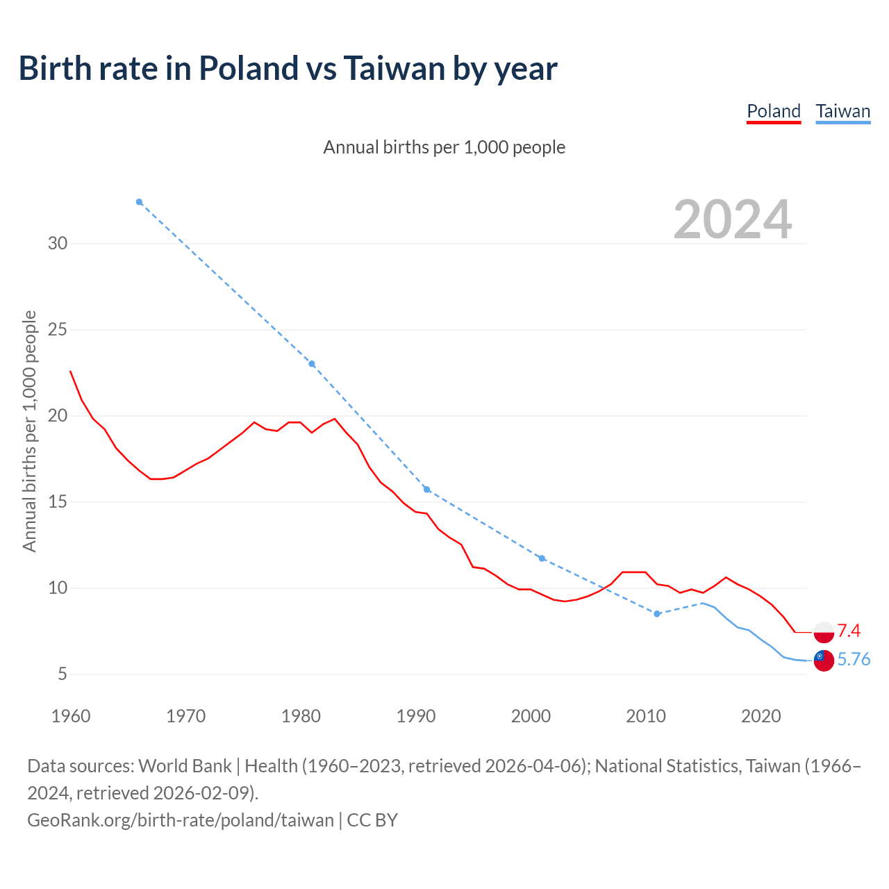 GeoRank.org/birth-rate/poland/taiwan | CC BY