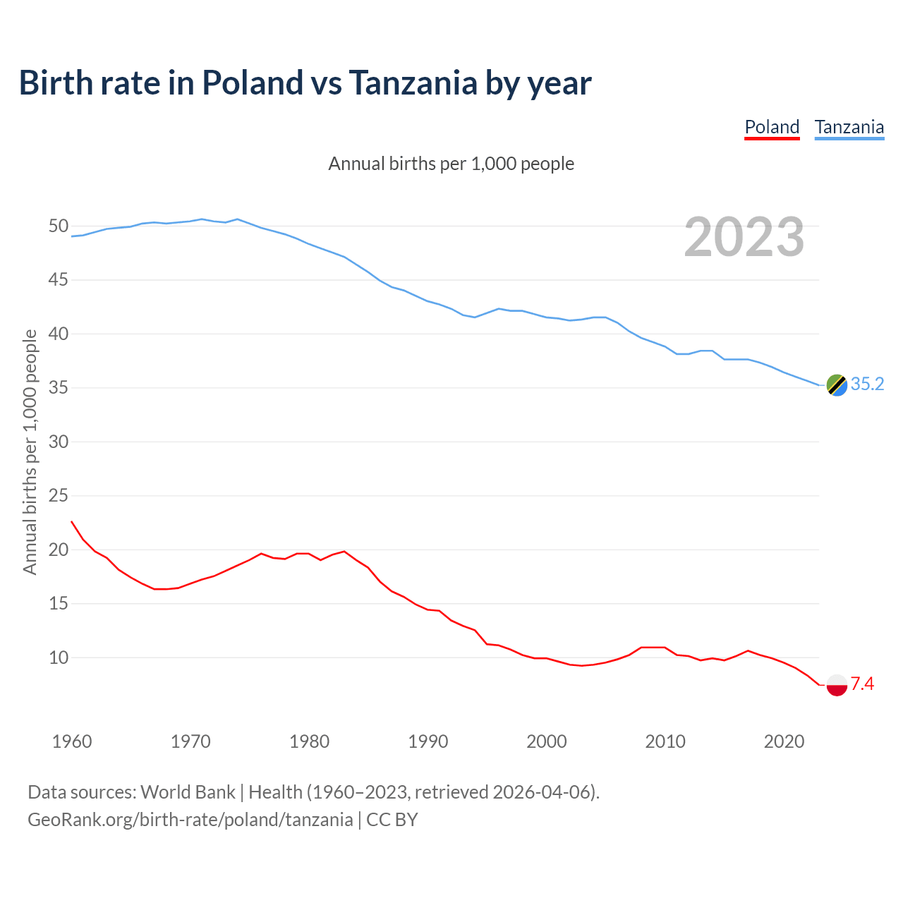 GeoRank.org/birth-rate/poland/tanzania | CC BY