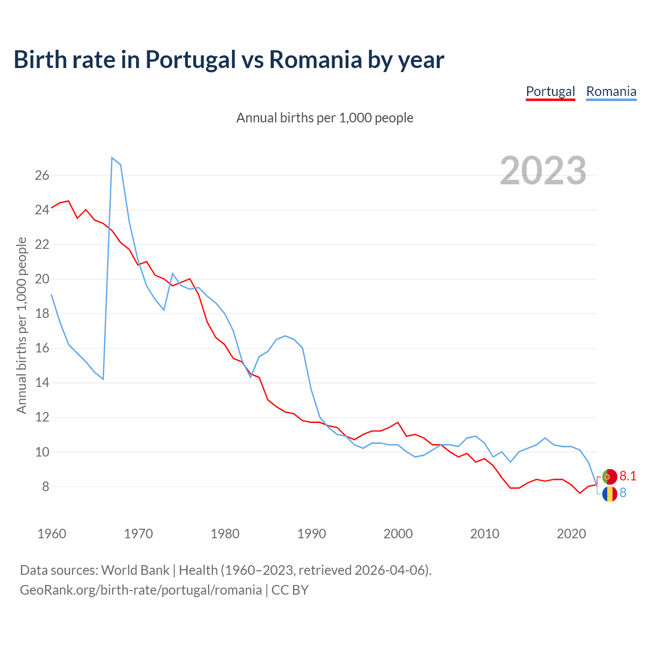 GeoRank.org/birth-rate/portugal/romania | CC BY