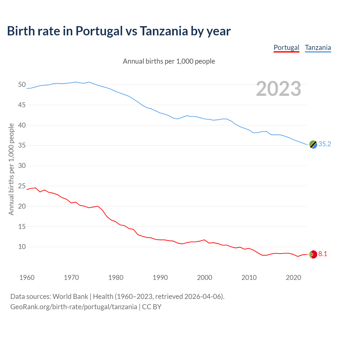 GeoRank.org/birth-rate/portugal/tanzania | CC BY