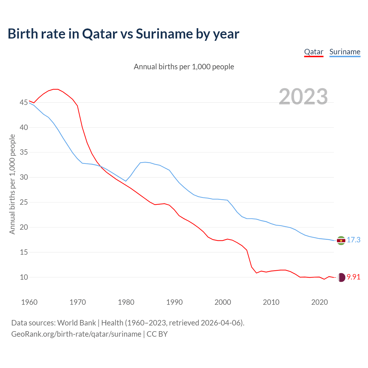 GeoRank.org/birth-rate/qatar/suriname | CC BY