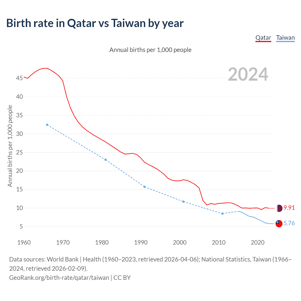 GeoRank.org/birth-rate/qatar/taiwan | CC BY