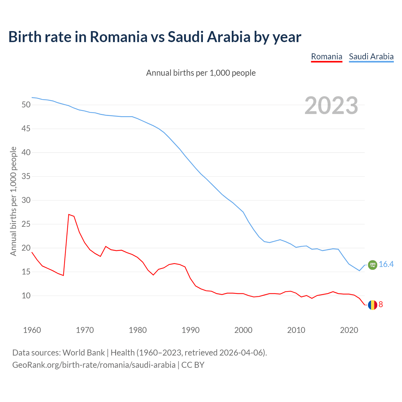 GeoRank.org/birth-rate/romania/saudi-arabia | CC BY