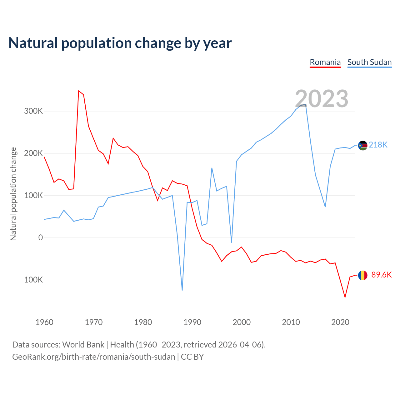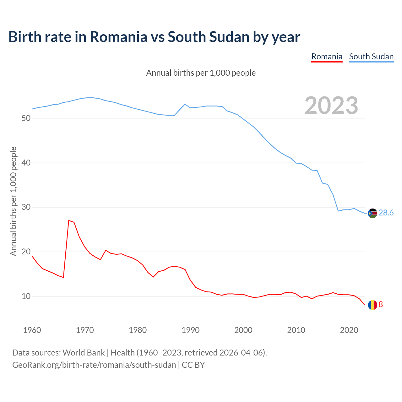 GeoRank.org/birth-rate/romania/south-sudan | CC BY