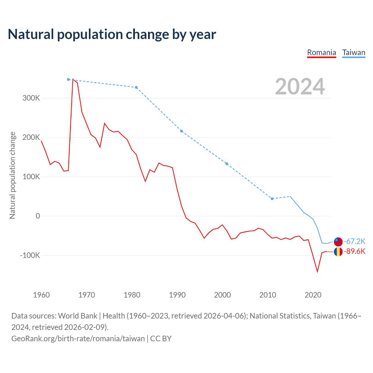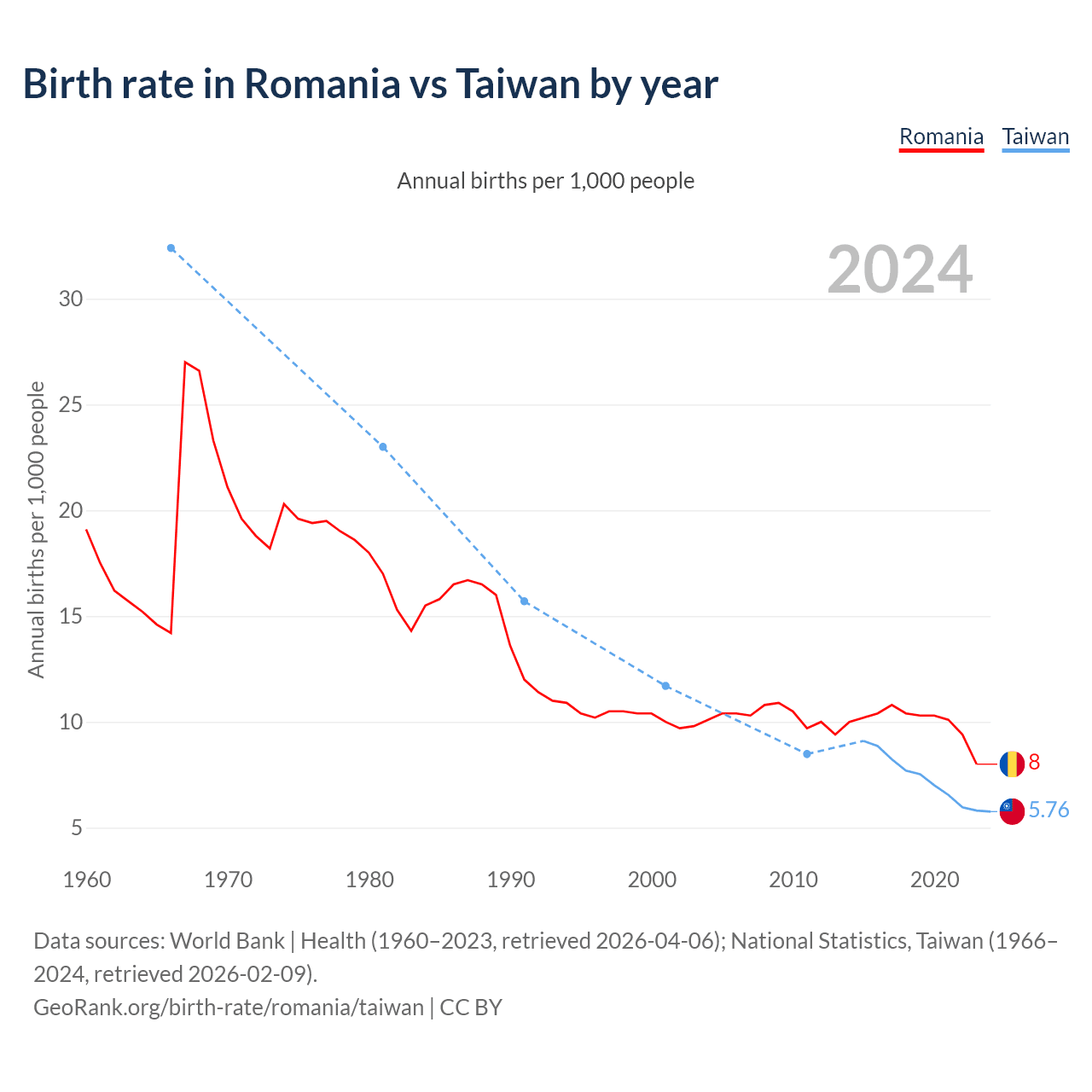 GeoRank.org/birth-rate/romania/taiwan | CC BY