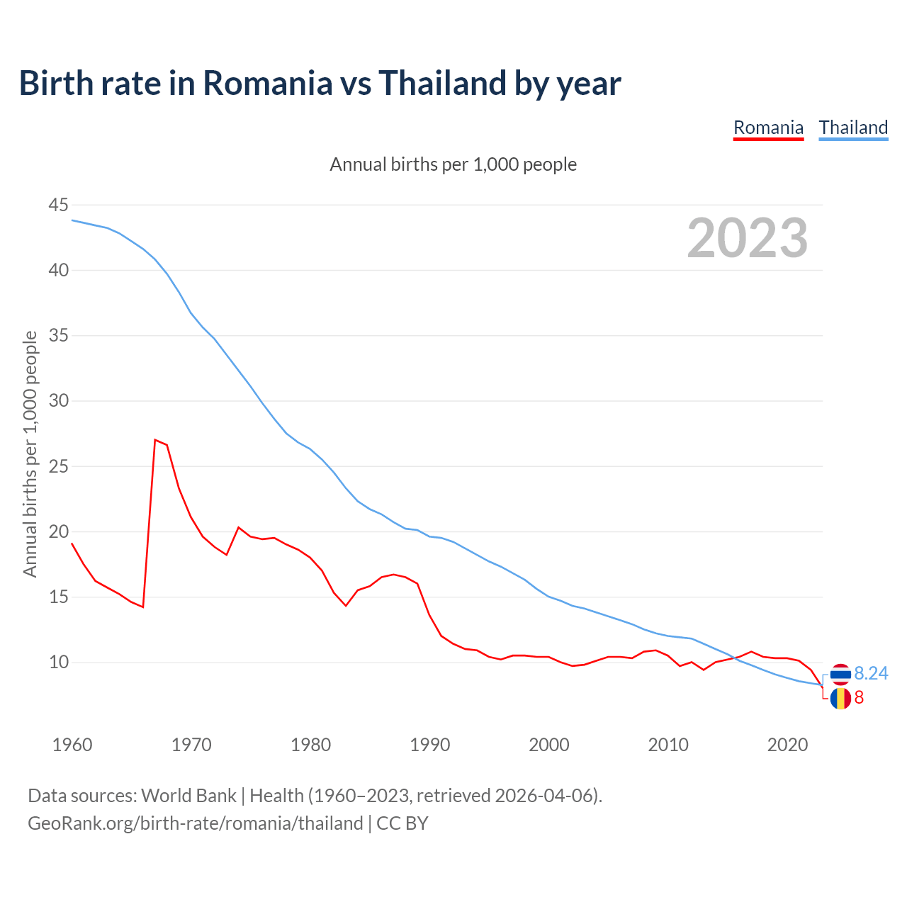 GeoRank.org/birth-rate/romania/thailand | CC BY
