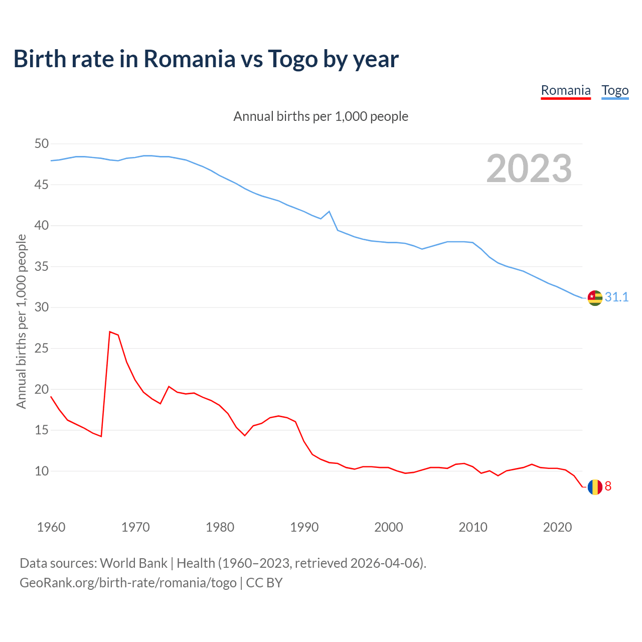 GeoRank.org/birth-rate/romania/togo | CC BY