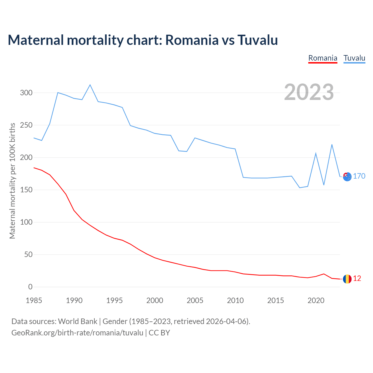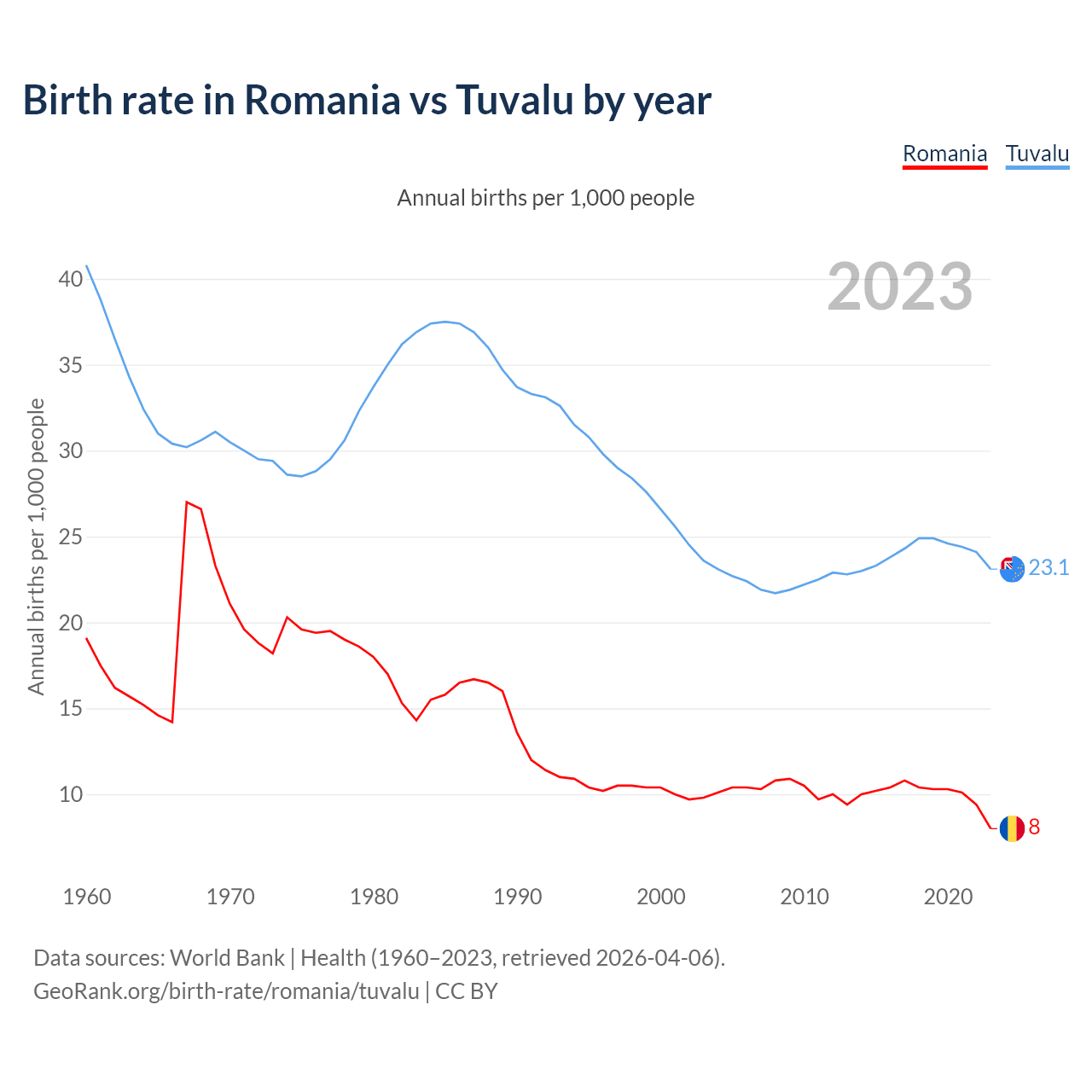 GeoRank.org/birth-rate/romania/tuvalu | CC BY