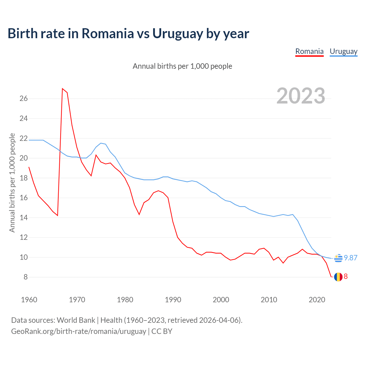GeoRank.org/birth-rate/romania/uruguay | CC BY